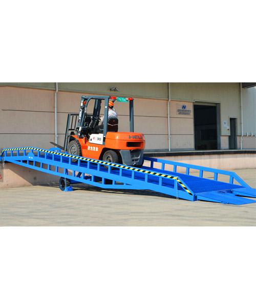 移動式登車橋是與叉車配合使用的貨物裝卸輔助設備,可根據汽車車廂的高低調節高度,叉車可以直接通過本設備駛入車廂內部進行貨物的批量裝卸,單人作業,即可實現貨物的快速裝卸。主要適用于各類工廠、倉庫、堆場、車站、碼頭、糧 庫等大批量裝卸貨需求的場所。